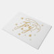 Este tapete festivo da porta do Natal mostra o texto de "alegria" manuscrito de Destei junto com algumas estrelas. O design tem uma aparência brilhante de cor amarela do ouro falsa e a cor de fundo é branca. AVISO: Este item não é feito de brilho real. Ela tem uma imagem criada digitalmente imitando o aspecto de brilho e será impressa no produto.
