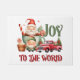 Aproveite esta design de Natal muito bonita. Tem um toque de cartoonaria. A mensagem diz, "Joy To The World" e os gráficos são papais noeis em uma linda caneca verde de cacau com um elfo na frente dela, e um caminhão fresco de fazenda vermelha vintage com árvores de Natal sendo entregue para o feriado. Isso faz um presente alegre excelente para enviar aqueles na sua lista legal.