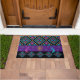 Sun Kokopelli Rug Doormat do Sudoeste Combinação de cores vívidas, roxa, que você pode personalizar as cores de fundo para corresponder ao seu decor. Culturas indígenas nativas americanas de Kokopelli. Atribuído a aliens antigos ou arte tribal e inspirado em desenhos de cavernas e rochas. Personalize as cores e estilos do tapete de porta nativo americano do Estilo Sudoeste. ideia de presente de excelente.