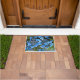 Porta decorativa que mostra uma foto de lindíssima, azul, florescência de Lacecap Hydrangea. Um design floral adorável! Utilizar no interior ou em áreas de acesso cobertas.