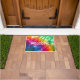 Fazem você amor laço-tintura? Comemore os anos 60 e o 70s no estilo com este doormat da laço-tintura do arco-íris! Foto de uma parte real da laço-tintura com o sol que brilha completamente para fazer as cores vibrantes.