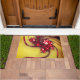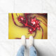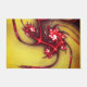 Fratural vermelho que adquiriu uma forma que lembra alguns lagartos, sapos finos ou répteis sobre uma textura arenosa amarela ocre.