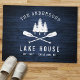 Um belo e rústico portão temático, com seu nome familiar e "Lake House" ou outro texto desejado junto com sua data e localização estabelecidas. Esta design, personalizada e única, apresenta uma silhueta branca de remos de barco cruzados e pinheiros em um impressão de tábuas de madeira em cores azuis ricas. Para ver mais designs como esta, sinta-se à vontade para visitar a minha loja aqui em "Zazzle.com/Rustic_Charm". Obrigados.