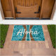 Correto. A mensagem de Aloha dá as boas vindas aos seus visitantes ao seu paraíso tropical. Laniakea Beach é um surf popular na costa norte de Oahu, Havaí. É conhecido por ondas fáceis de andar e tartaruga marinha verde havaiana. Nosso design lembra uma prancha de anos setenta ou uma espingarda. Nós combinamos madeira de koa ou faia com tiras de competição e um impressão de pareau de flores de hibisco. Este design vem em várias cores. Você pode personalizar a mensagem.