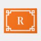 Borda retangular geométrica do estilo chave grego branco decorativo num tapete laranja brilhante de 18" x 24" com um monograma serif moderno. Personalize este design editando o branco ou o pêssego com sua opção de cor favorita. Altere o estilo, o tamanho ou a cor da fonte, conforme necessário. Combine esta trendy shade à sua decoração minimalista. Temos também uma fronteira da chave grega para a grande dimensão do tapete de porta. Envie uma solicitação se precisar de outro presente com uma área de impressão exclusiva.
