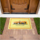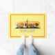 Design de porta frontal decorativa apresenta a silhueta do horizonte da cidade de Las Vegas Nevada com abertura de cor d'água do pôr do sol sobre fundo amarelo pálido e coordenadas de latitude e longitude