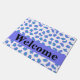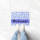 Bem-vindos visitantes à sua casa com esta na moda e sofisticada lavanda roxa, turquesa e tapete de pele branca-leopardo. Este tapete de porta é personalizado com a palavra Bem-vindo que você pode mudar para outra palavra ou nome. Uma faixa roxa de lavanda periwinkle fornece uma área para personalização e um pop de cor. Aproveite esta design popular e contemporânea que irá adicionar um sotaque decorativo de casa de tendências. Esta design de leopardo está disponível em várias combinações de cores nesta loja.