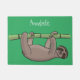 Esta preguiça feliz e fofa está pendurada num bambu verde. Tudo feito no adorável estilo de ilustração de desenho animado.