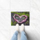 Entre com amor em seu doormat da flor do plumeria do coração. Os leus bonitos de uma flor dados forma como um coração que seja colocado na lava balançam.