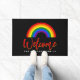 Uma bela design de porta vermelha de boas-vindas com as cores personalizadas do arco-íris orgulho gay LGBT. Mostre o seu amor com esta bela porta de gay e personalize-a com o seu nome.