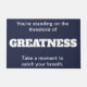 Diz "Você está no limiar da GREATNESS. Tome um momento para recuperar o fôlego."