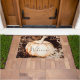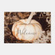 A design apresenta uma elegante abóbora branca com listras laranja e tons de terra aninhados nos ramos de prata de um prado de tomilho de cobre. Bem-vindo é escrito em um amigável roteiro de caligrafia branca. Personalize facilmente as cores do texto e o texto para fazer o tapete completamente seu.