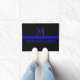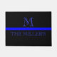 Personalize e personalize a inicial e o nome de família nesta linha azul fina elegante esteira de porta.