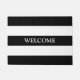Esta porta tem um estilo moderno-chic com o padrão de listras preto e branco e o texto de boas-vindas personalizado. Personalizar para torná-lo especial.