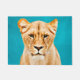 Um retrato digitalmente pintado da Lioness Africana com fundo azul é uma ideia perfeita de presente para alguém que ama animais selvagens.