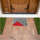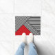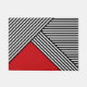Design geométrico simples com tiras pretas e brancas e decoração de triângulos vermelhos