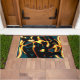 A imagem, com fundo ciano e fitas amarelas com partes vermelhas e pretas queimadas, pode ser confundida com spray defeituoso (último spit de tinta spray) ou, ao olhar para uma longa distância, pode parecer veluz ou pano seco.