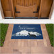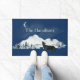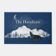 tapete azul da porta da frente, com gráficos de um lobo solitário uivando na lua com montanhas ao fundo. Personalize o texto personalizado para atender às suas necessidades.