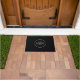 Bem-vindos convidados com um tapete de porta personalizado com o logotipo da sua empresa em um fundo preto. Perfeito para escritórios, vitrines, áreas de recepção, lobbies e empresas domésticas.