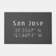 Porta frontal com coordenadas de latitude e longitude de San Jose California em fonte urbana moderna em fundo de cinza escura