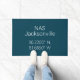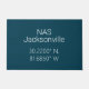 Porta frontal com coordenadas de mapa de latitude e longitude para a estação aérea Naval dos EUA NAS Jacksonville no estilo Flórida Roboto, em fundo azul Marinho.
