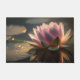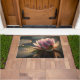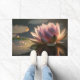 Um belo tapete de porta com uma fotografia de um belo lótus rosa florescendo à luz da manhã.