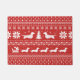 Um padrão bonito, vermelho e branco, no estilo da blusa de natal, com Dachshances vestindo suéteres de férias e um esquilo andando de trenó puxado por Doxies. Texto: Cachorros do Amar Joy Peace Wiener. Um tapete de boas-vindas divertido e festivo para amantes de cachorros. Esta porta de Natal decorativa faz um presente único para qualquer um que ama dachsias.
