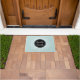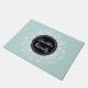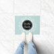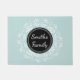 Esteira de porta contemporânea com a grinalda floral azul da hortelã e texto personalizado.