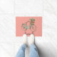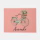 Seu nome na porta, fundo cor-de-rosa com a ilustração aquarela de um verde primavera biciclo com maçãs em uma cesta.