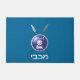Uma representação do escudo de um Maccabee e duas lanças. O escudo é enfeitado por um leão e o texto lendo "Yisrael" (Israel) no alfabeto paleohebraico. O texto hebraico moderno que lê "Maccabee" também aparece. Os Macabeus eram rebeldes judeus que libertaram Judeia do jugo do Império Seleúcio. Chanukkah não é apenas um festival de inverno-médio com velas e iguarias fritas. celebra uma vitória militar, e garante a liberdade religiosa, sobre o Império Seleúcio. Além disso, a revolta foi uma guerra civil envolvendo aqueles judeus que eram leais ao G-d e aqueles que tinham adotado o Hellenismo dos Seleucids.