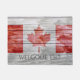 Um design gráfico que eu criasse para parecer ser uma bandeira e uma folha de bordo manchadas vermelho gravadas de Canadá na madeira cinzenta rústica do conselho do celeiro. Criado completamente digital, este design simples, corajoso, canadense olhará perfeitamente de convite na frente de sua porta da rua!