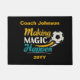 A citação motivacional da bola de futebol do fazer Magic Acontece, dizendo que inspirará jogadores de campo e treinadores em qualquer jogo de torneio. > Arte minimalista para atleta de futebol orgulhoso, melhor treinador, treinador desportivo, goleiro ou árbitro futebol. > Personalize-o! Adicione nome personalizado, foto ou texto.