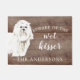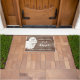 Cuidado com o tapete malvado da porta do cão maltês que está em um fundo falso rústico. Visite nosso compro para ver uma grande variedade de pães de cão