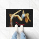 Mulheres loiras suspensas por malhação aérea de cordas de seda, ioga, dança para personalizar com sua própria saudação, nome, mensagem, etc