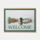 Dois patos Mallard, um ralo e uma fêmea, natação juntos em uma lagoa do Alasca. A leitura de texto, "WELCOME" também é exibida. O Mallard, Anas platyrhynchos, reproduz-se nas Américas temperadas e subtropicais, na Europa, na Ásia e no Norte de África, e foi introduzido na Nova Zelândia e na Austrália. Os pássaros machos têm uma cabeça verde ou azul clara, enquanto a fêmea é marrom-claro. O gregário Mallard vive em zonas úmidas e come plantas aquáticas. O Mallard é o ancestral da maioria dos patos domésticos. O Mallard foi uma das muitas espécies de aves originalmente descritas por Lineu em seu trabalho do século 18, Systema Naturae, e ainda tem o primeiro nome binomial que lhe foi dado. O nome deriva do velho "dreno selvagem" francês ou mallart, embora sua derivação final não seja clara. Pode estar relacionado com um nome próprio do Velho Alto Alemão, Madelhart, pistas deitadas nas formas alternativas em inglês "maudelard" ou "mawdelard". Os machos se cruzam frequentemente com os parentes mais próximos do gênero Anas, como o Pato Negro norte-americano, e também com espécies mais aparentadas, por exemplo o Norte Pintail, levando a vários híbridos que podem ser totalmente férteis. Isso é bastante incomum, e indica que o Mallard evoluiu muito rapidamente durante o Pleistoceno tardio. As larvas parecem estar mais próximas de seus parentes indo-Pacífico do que de seus parentes americanos julgando pela biogeografia. Considerando os dados de sequências de mtDNA D, eles podem ter evoluído mais provavelmente do que não na área geral da Sibéria; preferencialmentes de ossos de Mallard aparecem bruscamente em restos de comidas de humanos antigos e outros depósitos de ossos fósseis na Europa, sem um bom candidato a uma espécie predecessora local. yrhynchos palaeoboschas. O Mallard tem de 20 a 26 polegadas (do qual o corpo forma cerca de dois terços), tem uma envergadura de asas de 32 a 39 polegadas e pesa 1,6 a 3,5 lb. O tamanho do Mallard varia clinicamente, e as aves da Groelândia, embora maiores do que as aves para o sul, têm notas menores e são mais armazenadas. Por vezes é separado como subespécie, a Groelândia Mallard (A. p. conboschas). O Mallard é um raro exemplo tanto da Regra de Allen como da Regra de Bergmann nas aves. Bergmann's Rule, que afirma que as formas polares tendem a ser maiores do que as relacionadas com climas mais quentes, tem numerosos exemplos em aves. A Regra de Allen diz que apêndices como ouvidos tendem a ser menores em formas polares para minimizar a perda de calor, e maiores em equivalentes tropicais e desérticos para facilitar a difusão de calor, e que os taxa polares estão mais armazenados no geral. Exemplos dessa regra em aves são raros, por falta de ouvidos externos. No entanto, a lista de patos é muito bem fornecida com vasos sanguíneos e é vulnerável ao frio. Os machos reprodutores são inconfundíveis, com uma cabeça brilhante verde-garrafa, uma extremidade preta traseira e uma laranja amarelada (também pode conter algum vermelho) pontas com preto (em oposição à lista negra/laranja nas fêmeas). Eles têm uma coleira branca que demarca a cabeça do peito marrom-formigado, asas marrons de cinza e uma barriga de cinza pálida. A cauda escura tem bordas brancas. A fêmea de Mallard é marrom-claro malhado, como a maioria dos patos borbulhantes fêmeas, e tem bochechas, sobrancelha, garganta e pescoço com uma coroa mais escura e faixa de olhos. Na eclosão, a coloração plumada do patinho é amarela na parte inferior e na face (com listras pelos olhos) e preta na parte de trás (com algumas manchas amarelas) até o topo e a parte de trás da cabeça. Suas pernas e o caroço também são pretos. Por se aproximar de um mês de idade, a plumagem dos patinhos passará a ser bárbara, parecendo-se mais com a fêmea (embora sua plumagem esteja mais nua) e suas pernas perderes a coloração das cinzas escuras. Dois meses após a eclosão, o período de repouso terminou e o patinho é agora juvenil. Entre três e quatro meses de idade, o jovem pode finalmente começar a voar à medida que suas asas são totalmente desenvolvidas para o voo (o que pode ser confirmado pela visão de penas de espetáculo púrpura). O seu projeto de lei irá, em breve, perder a coloração escura das cinzas e se é macho ou fêmea pode finalmente ser distinguido por três fatores. A coloração das letras é amarela em machos, preta e laranja para fêmeas. As penas são castanhas-avermelhadas para machos, castanhas para fêmeas. A pena de rabo-do-centro das aves masculinas (chamada de pena sacada) é curvada; as fêmeas têm penas de hetero. Durante o último período de maturidade até a idade adulta (6-10 meses de idade), a plumagem de jovens do sexo feminino permanece a mesma enquanto a plumagem de jovens do sexo masculino lentamente muda para suas cores reconhecíveis. Esta alteração da plumagem aplica-se igualmente aos machos adultos do tipo Mallard quando transitam para dentro e para fora da sua plumagem não reprodutora (eclipse) no início e no final do período de muda de Verão. A idade adulta dos Mallards é de 14 meses e a expectativa média de vida é de 20 anos. Uma espécie ruidosa, o macho tem um chamado nasal, e um apito agudo, enquanto a fêmea tem um quack mais profundo estereotipicamente associado a patos. O Mallard é amplamente distribuído pelo hemisfério Norte, América do Norte, do sul e centro do Alasca ao México, ilhas havaianas, e pela Eurásia, da Islândia e do sul da Groenlândia e partes de Marrocos (Norte de África) no oeste, Escandinávia ao norte, e à Sibéria, Japão e China no leste. É fortemente migratória nas partes nortes da sua área de reprodução, e invernos mais a sul. Na América do Norte, por exemplo, inverte-se para o Sul, para o México, mas também invade regularmente a América Central e o Caribe entre setembro e maio. O Mallard habita uma vasta gama de habitats e clim
