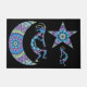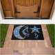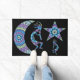 Mandala Moon Star Kokopelli Doormat. Estrela e lua do sudoeste. Combinação de cores azuis Vivid do Kokopelli Rug Doormat que você pode personalizar as cores de fundo para corresponder ao seu decoro. Culturas indígenas nativas americanas de Kokopelle. Atribuído a aliens antigos ou arte tribal e inspirado em desenhos de cavernas e rochas. Personalize as cores e estilos do tapete de porta nativo americano do Estilo Sudoeste. ideia de presente de excelente.