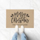 Adicione um toque de elegância à sua decoração da varanda de férias com esta porta de Natal na moda Feliz. Design apresenta escrevendo de script e acentos de galhos com folhas e bagas ocas. Personalize com o monograma do sobrenome da sua família. Inclui um fundo rústico neutro do que texturizado.