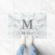 Avise seus visitantes que chegaram na casa certa. Você pode adicionar o nome e o monograma da sua família em texto de cinza. O fundo é mármore branco falso.