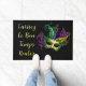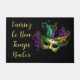 Favor de festa com tema Mardi Gras de Nova Orleans em verde, dourado e roxo, as cores tradicionais do carnaval de Terça-Feira Gorda.