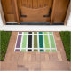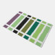 Padrão geométrico linear, retangular, listrado de matizes pretas, roxas e verdes.