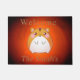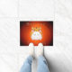 Um tapete de porta marrom e bonito. Hamster em tapete laranja e marrom de boas vindas.