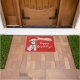 Feliz Feliz Feliz Feliz Feliz Cachorro Miniatura Schnauzer vestindo um chapéu santa com um cartaz com a mensagem Paw - la - la- la. porta estacionada sobre fundo vermelho. Visite nosso compro para ver uma grande variedade de pães de cão