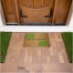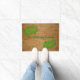Na moda tan e tapete verde de porta feito em um fundo de madeira de bambu. Folhas bonito verdes de samambaia, decorar os lados superior esquerdo e inferior direito do tapete. Personalize o texto verde para ler o que você quer.