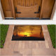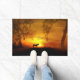 Um bonito tapete de porta, com um cavalo em um nascer do sol sudoeste com carvalhos herdados! Um belo tapete de porta, terá beleza e função para a decoração da sua casa!