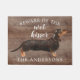 Cuidado com o beijo molhado" O tapete da porta Black & Tan Dachshund Dog foi colocado sobre um fundo falso rústico. Visite nosso compro para ver uma grande variedade de pães de cão