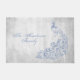 Adicione um toque elegante à sua porta com um tapete de porta personalizado leve azul-pavão. Design de porta apresenta um pavão azul-claro vibrante, uma vinha branca macia contra um fundo de cinza de luz com uma área para personalizar com o nome de sua família. Itens de presentes adicionais disponíveis com este design, bem como uma variedade de cores.