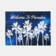 Bem-vindos aos seus convidados ao paraíso neste simples tapete de boas-vindas que proporciona um lugar para os seus convidados limparem os pés e os convidem para a vossa casa com palmeiras tropicais silhueta ao fundo. Os tapetes de boas-vindas da praia com o céu estrelado.