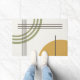 Um desenho abstrato inspirado no abstrato. minimalismo da arte dos anos 50. Círculos e linhas em ouro e verde-oliva.