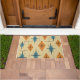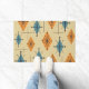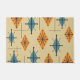 Esta design da era atômica, inspirada retroativamente, tem formas de diamante azuis e laranja, estereótipos sputnik e linhas ousadas.