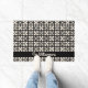 Meio século Azulejos atômicos modernos com padrão geométrico preto e amêndoa. Um padrão clássico de grade em forma de médio impressionante, que lembra os blocos de brisa do meio século, com uma estética de 50 de safra. Não em preto e branco, mas preto e creme. O texto do nome pode ser personalizado/personalizado. Perfeito para a era espacial. Por Kierkegaard Design Studio.